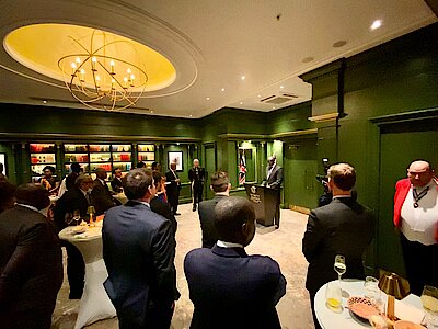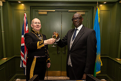 After the credentials ceremony, a Vin D'Honneur Reception was held for High Commissioner in central London which was attended by Ambassadors, the Marshal of the Diplomatic Corps, friends of Rwanda and Rwandan Community Leaders from across the UK.